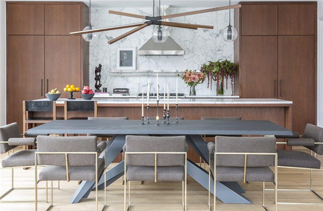 Nếu không gian phong khách vuông và rộng thì nên bố trí theo hai băng ghế sofa đối diện nhau sẽ tạo sự cân đối, hài hòa cho phòng khách.