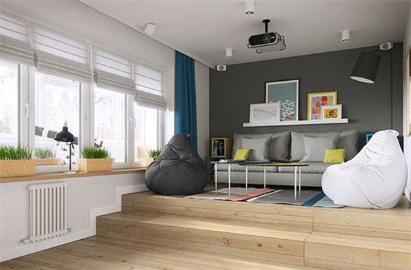 Nếu không gian phòng cách nhà bạn hẹp và dài thi nên bố trí băng sofa dài sát tường theo kiểu chữ L